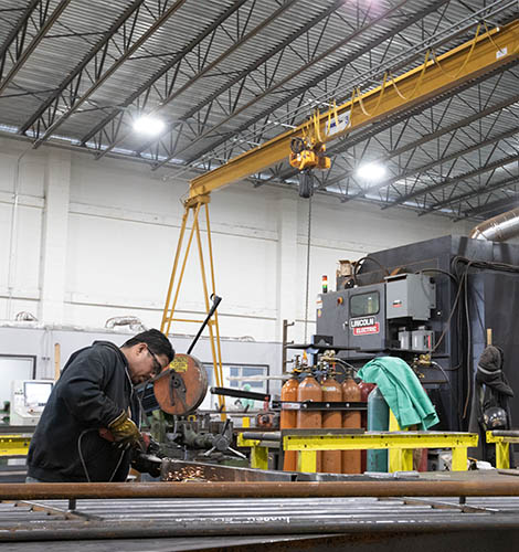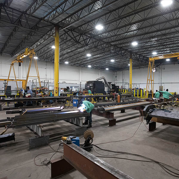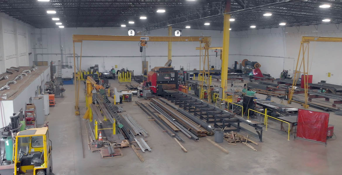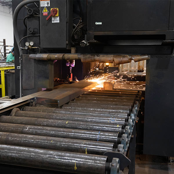 With state-of-the-art comprehensive CNC processing machinery members are cut, coped, dilled, marked, and laid out in one step increasing shop productivity and accuracy.