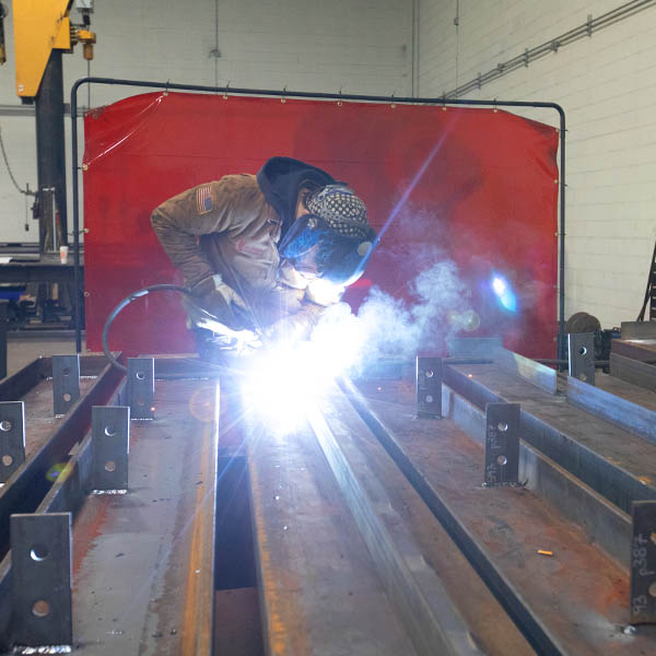 Layout of stairs, railings, and structural members is performed automatically with robotics to which allows our workforce to focus on assembly and welding.